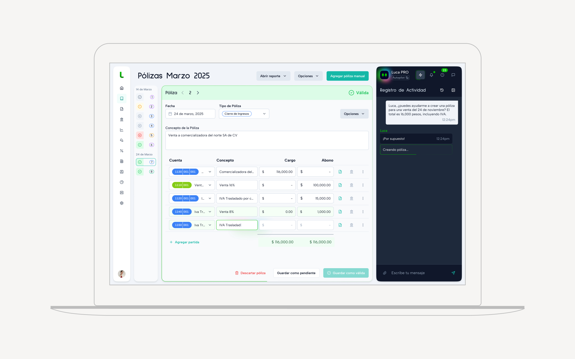 Logic Kernel diseñó e implementó una plataforma digital integral que combina automatización con un diseño fácil de usar. Entre sus características principales se encuentran los catálogos de cuentas personalizables, la generación automática de reportes financieros y un panel centralizado para administrar múltiples cuentas de clientes.